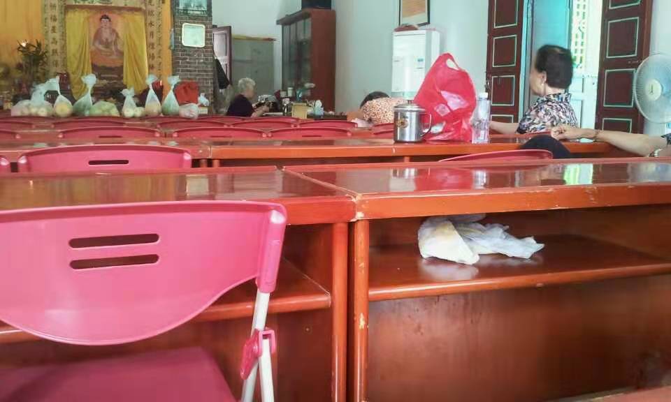第六第八图,我为居士颂佛听讲处。我来时,几位老年居士正趴桌上午睡,堂前有她们带来的供果,俱是白发苍苍。我,也在此静坐,歇一歇吧