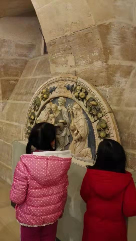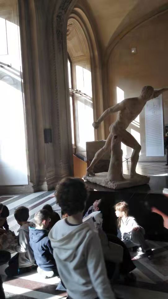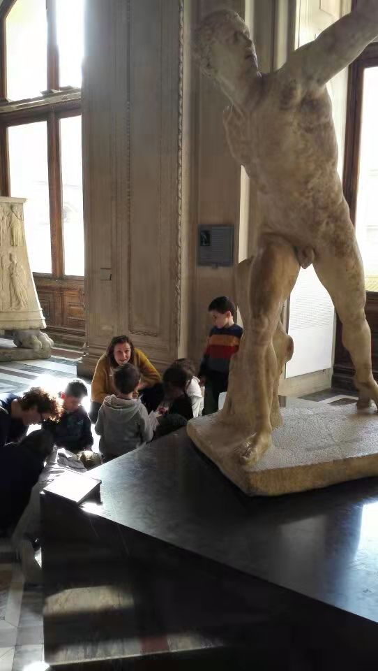 法国小朋友们也在艺术老师带领下,一队队地来这里,席地而坐听老师讲解,现场观摩,受艺术熏陶。