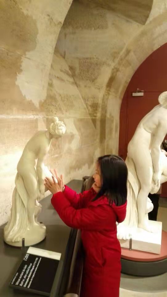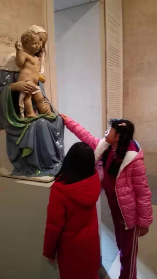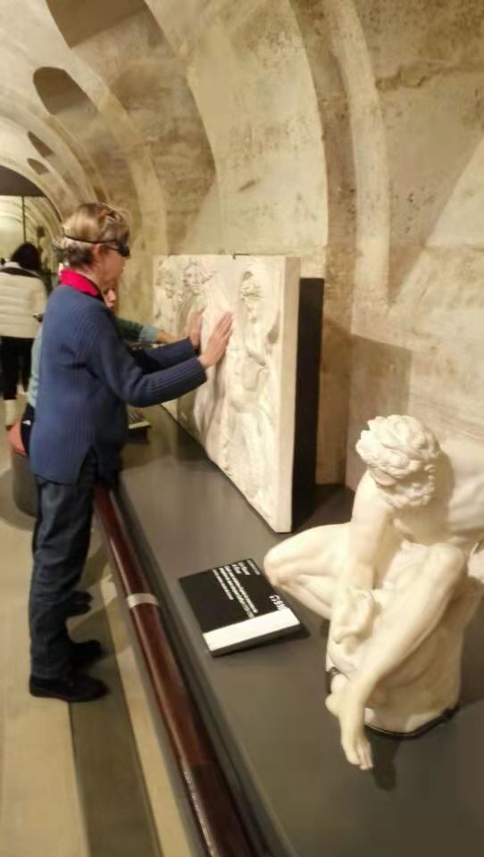 觉得美就摸一摸。金发的盲人老太太也有一个旅游团,她们通过用手触摸感受雕塑的凹凸感。