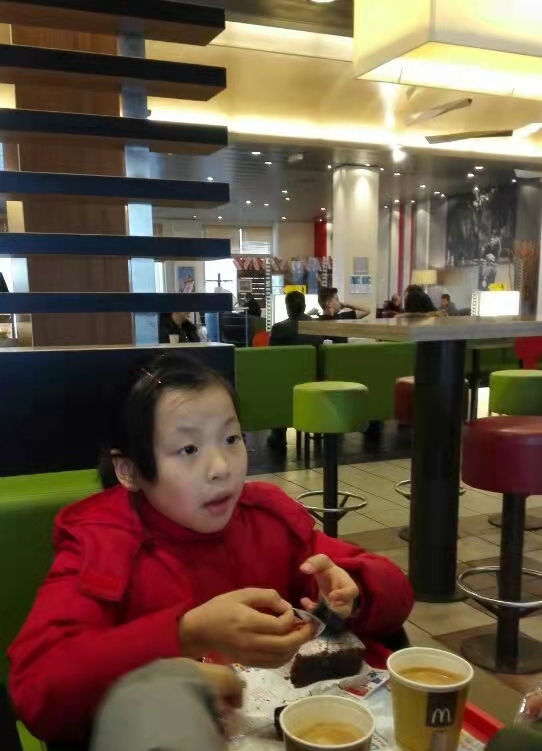 茫茫大雪中,途中瑞士小村庄们。喝杯咖啡,来块布朗尼,休息一下。蛋糕偏甜,不是我的口味。咖啡很香,但我不爱喝。他们爷俩吃喝得挺带劲。只是这里“no coin”,我想消费掉零钞钢镚的愿望落空了。