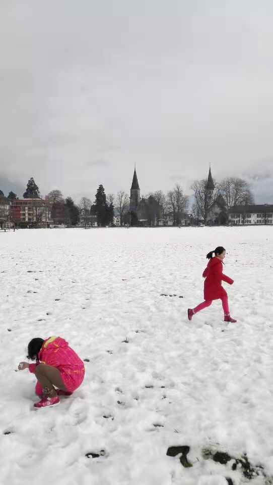 今年在北京都没玩上雪,跑瑞士来玩上了。