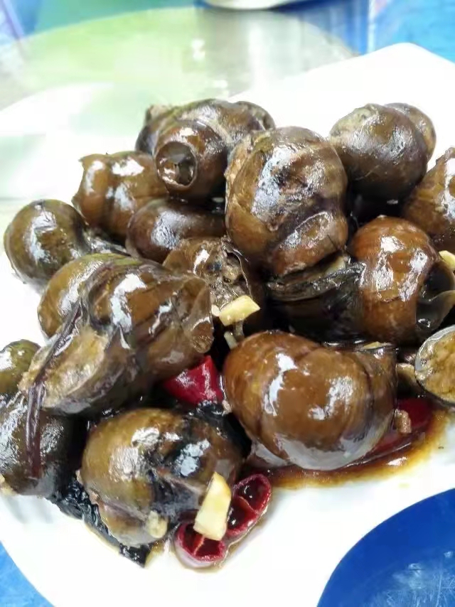 美食第一轮:啤酒鱼,田螺酿,小河虾。