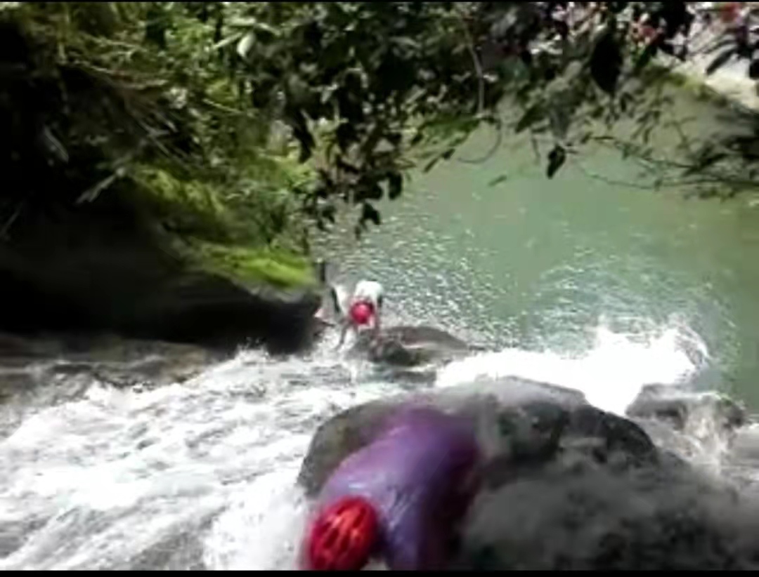 这张是一次瀑布拓展,穿着雨衣,也被水冲的要命。抵抗着水的冲力奋勇向上爬。