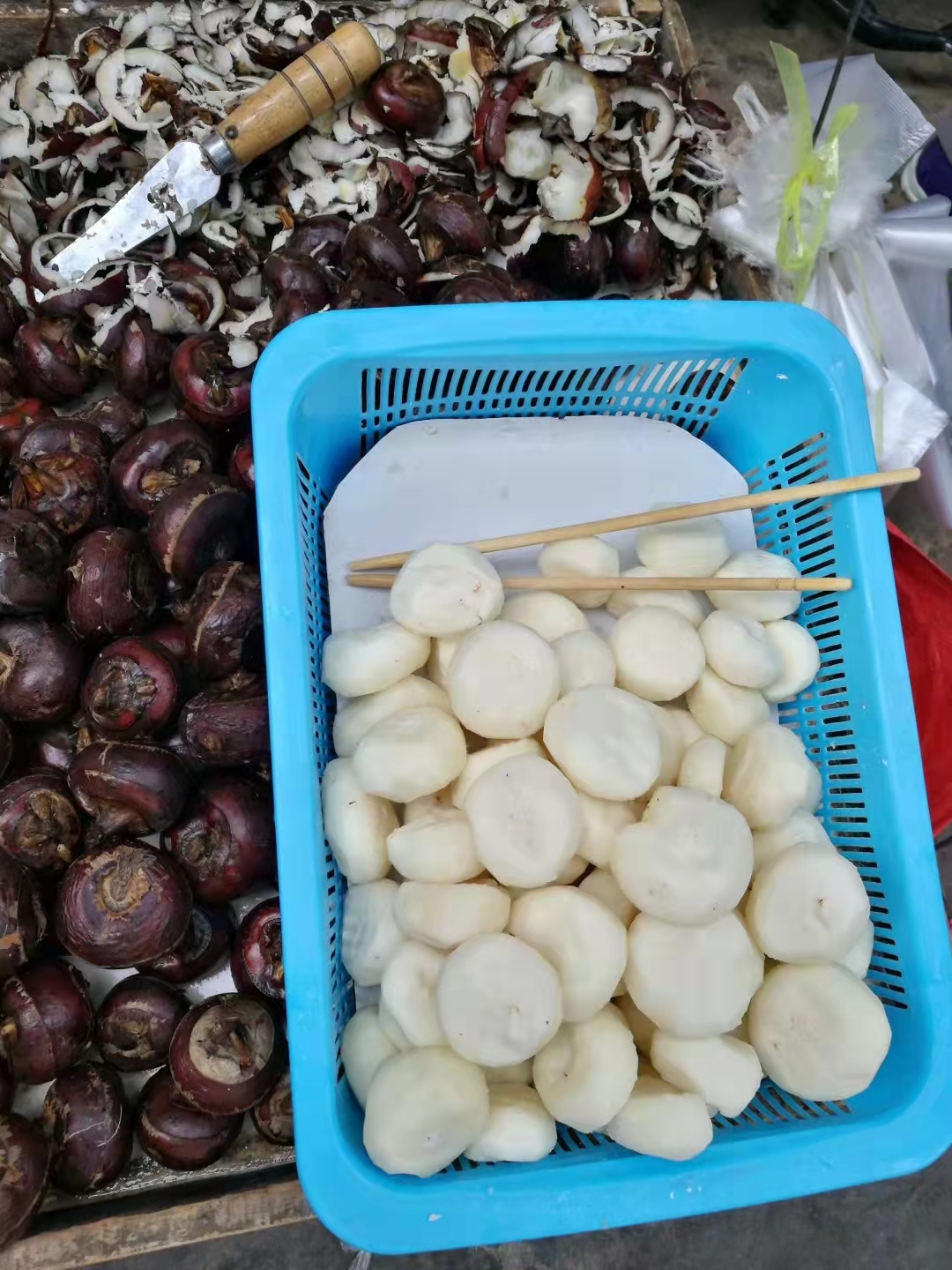 路边现削的荸荠真好,我前几天在四川就天天买着吃。