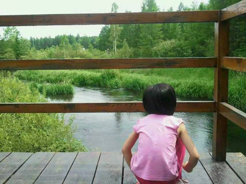 清澈的河水,倒影着优雅的白桦和松林,记录此刻我们一家人的亲爱与幸福。。。