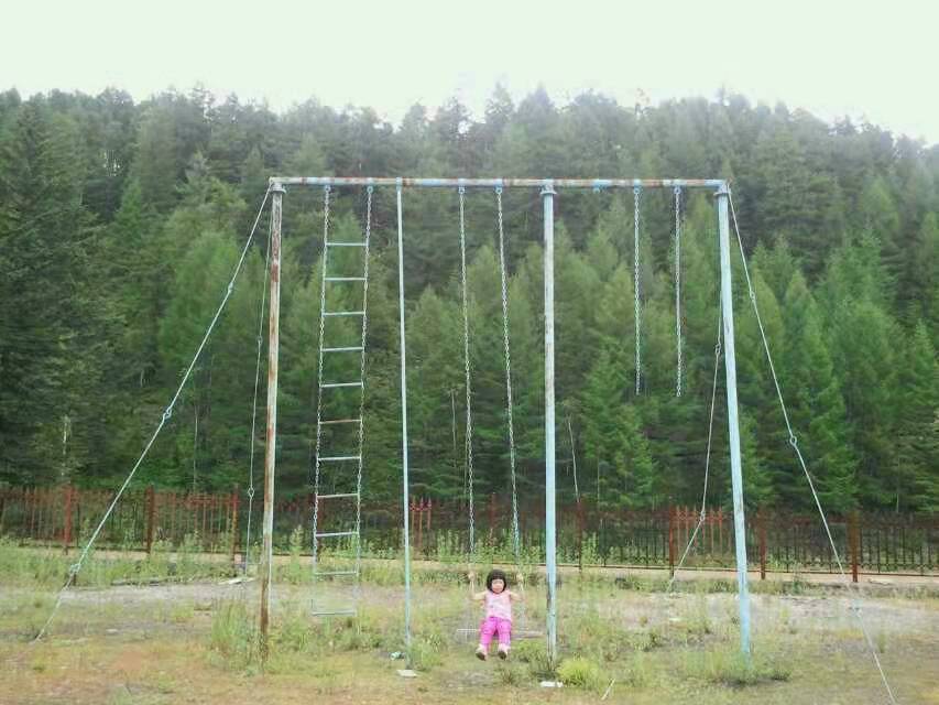 图1图2,中朝边境检查站,大山深处的秋千架。宝贝狂奔而去,玩个尽兴。最后说,太喜欢旅游了。