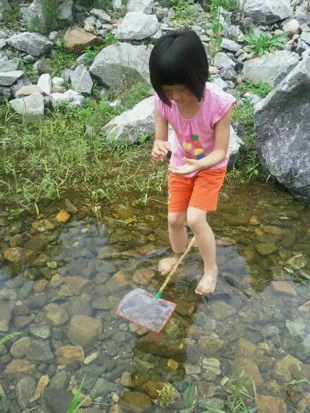 从通化去丹东绿江村的路上,连绵青山绿水近一百多公里,风景如画,一路如图所示。宝贝在溪流处捞到不少小鱼。她平时周末就喜欢去郊区捞鱼,车里常备抄子,水桶