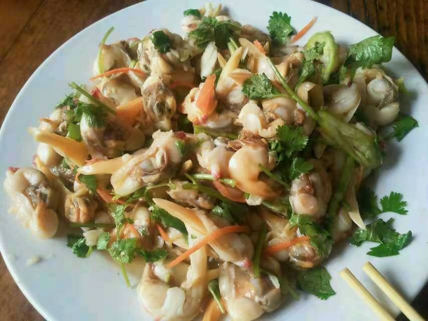 图3图1,丹东特产黄蚬子。去壳纯肉凉拌一盘40。宝贝吃惯了烟台海鲜,直说这蚬子怎么这么肥大这么鲜。